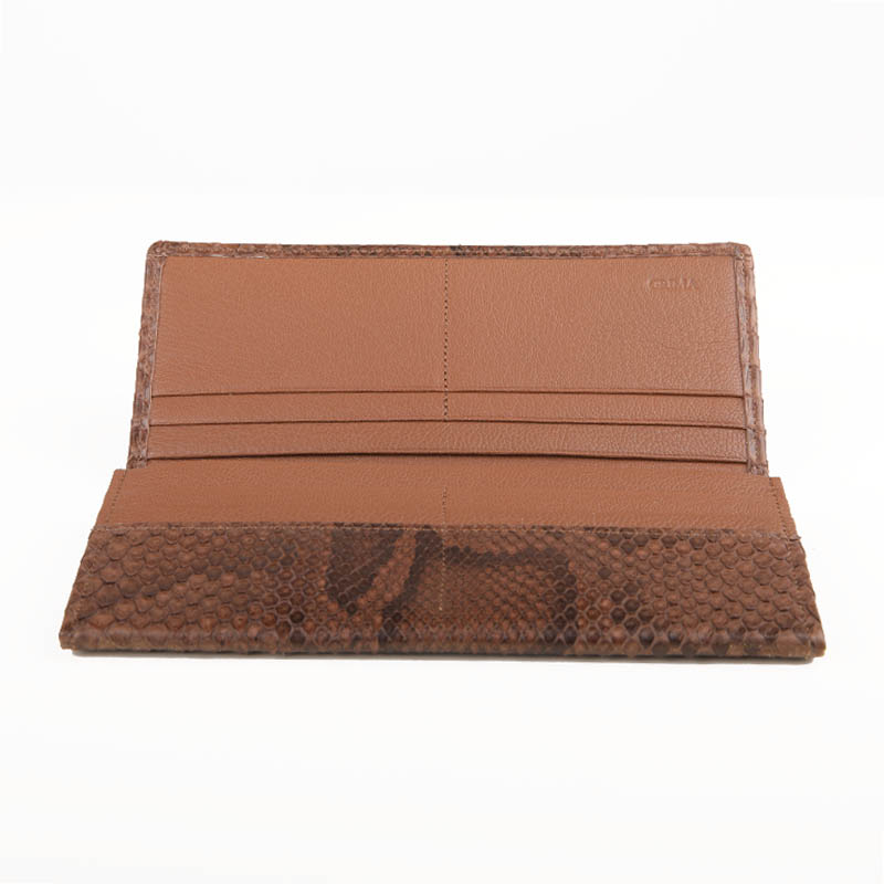 選び抜かれたニシキヘビの鱗模様が放つ、圧倒的な存在感。日本の熟練職人が一つひとつ丁寧に仕立て上げたこの長財布は、手にした瞬間にその「本物」の価値を実感いただけます。