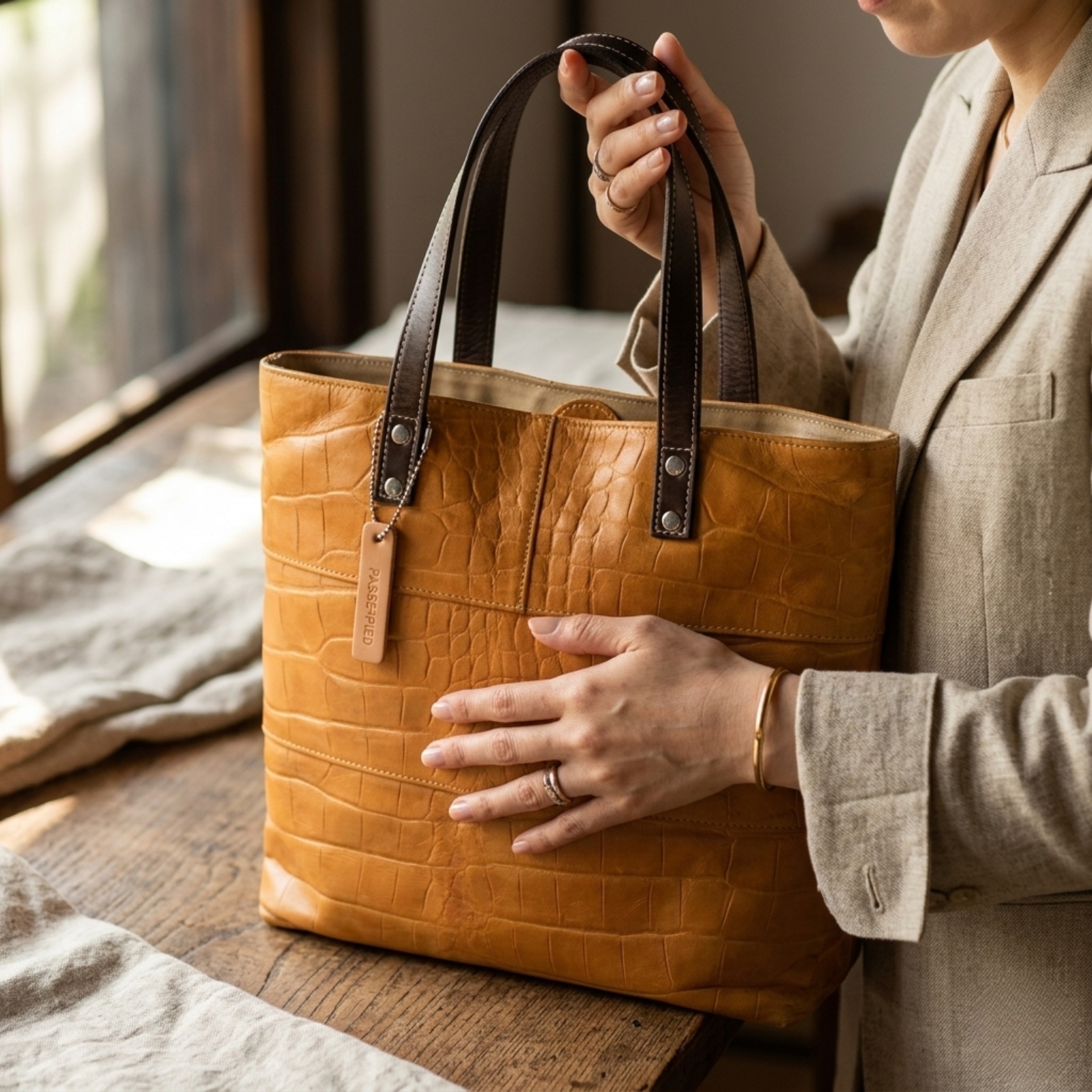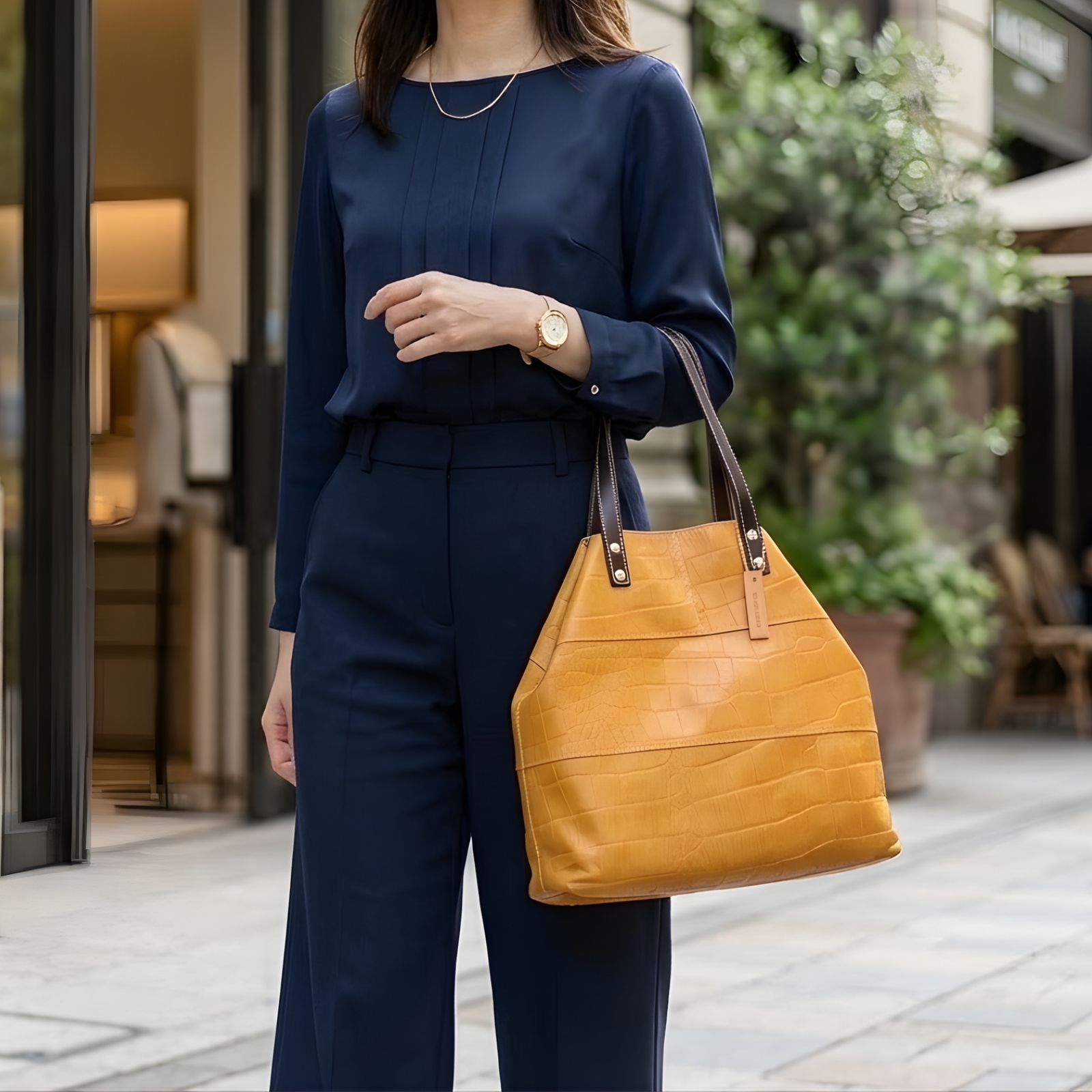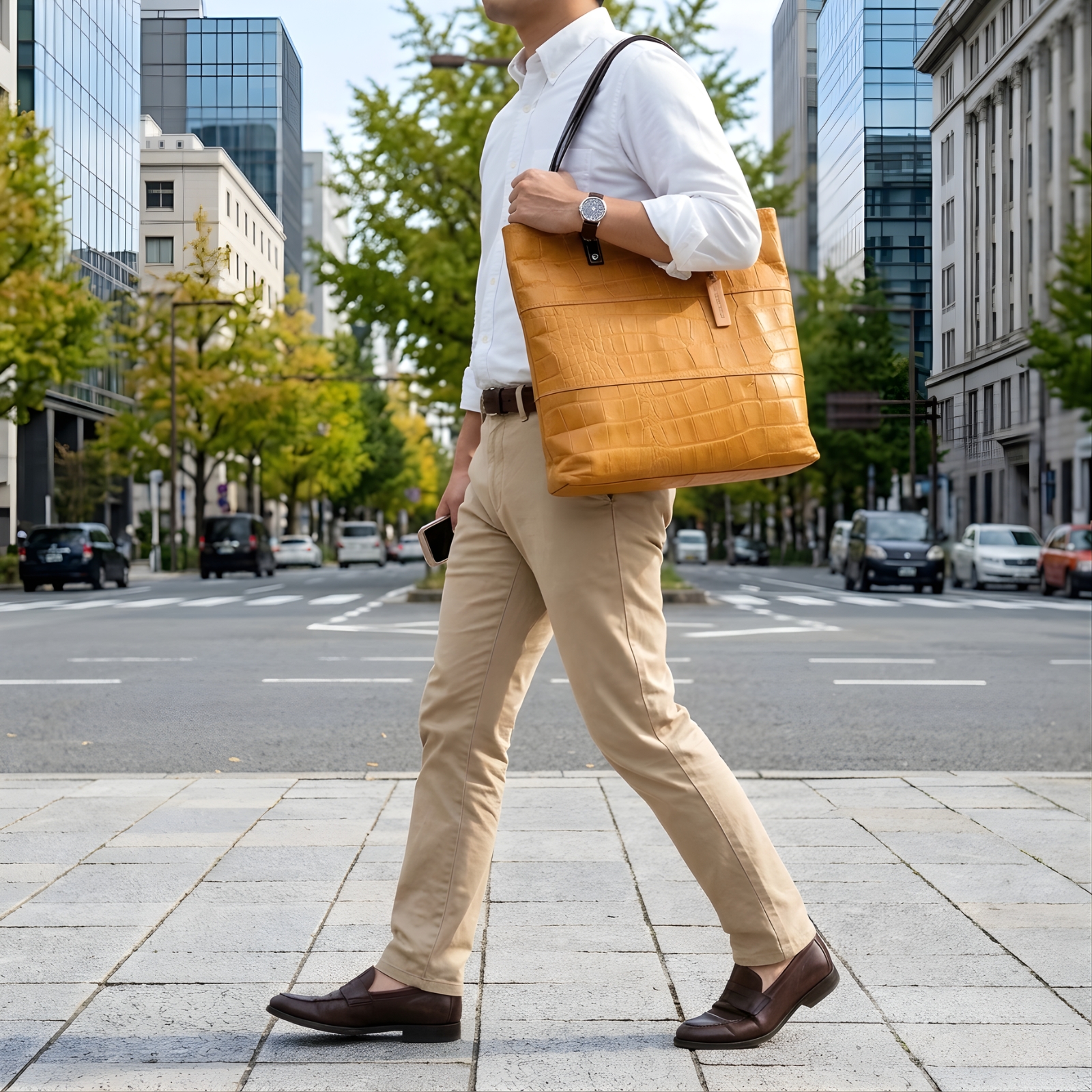 日本の職人が一点一点丁寧に作り上げた「Made in Japan」の品質。美しいクロコ型押しの牛革は、使い込むほどにあなたの手に馴染み、味わい深いあなただけの逸品へと育ちます。本物の価値を知る人として、持つだけで自分自身に誇りを持てる、特別なバッグです。