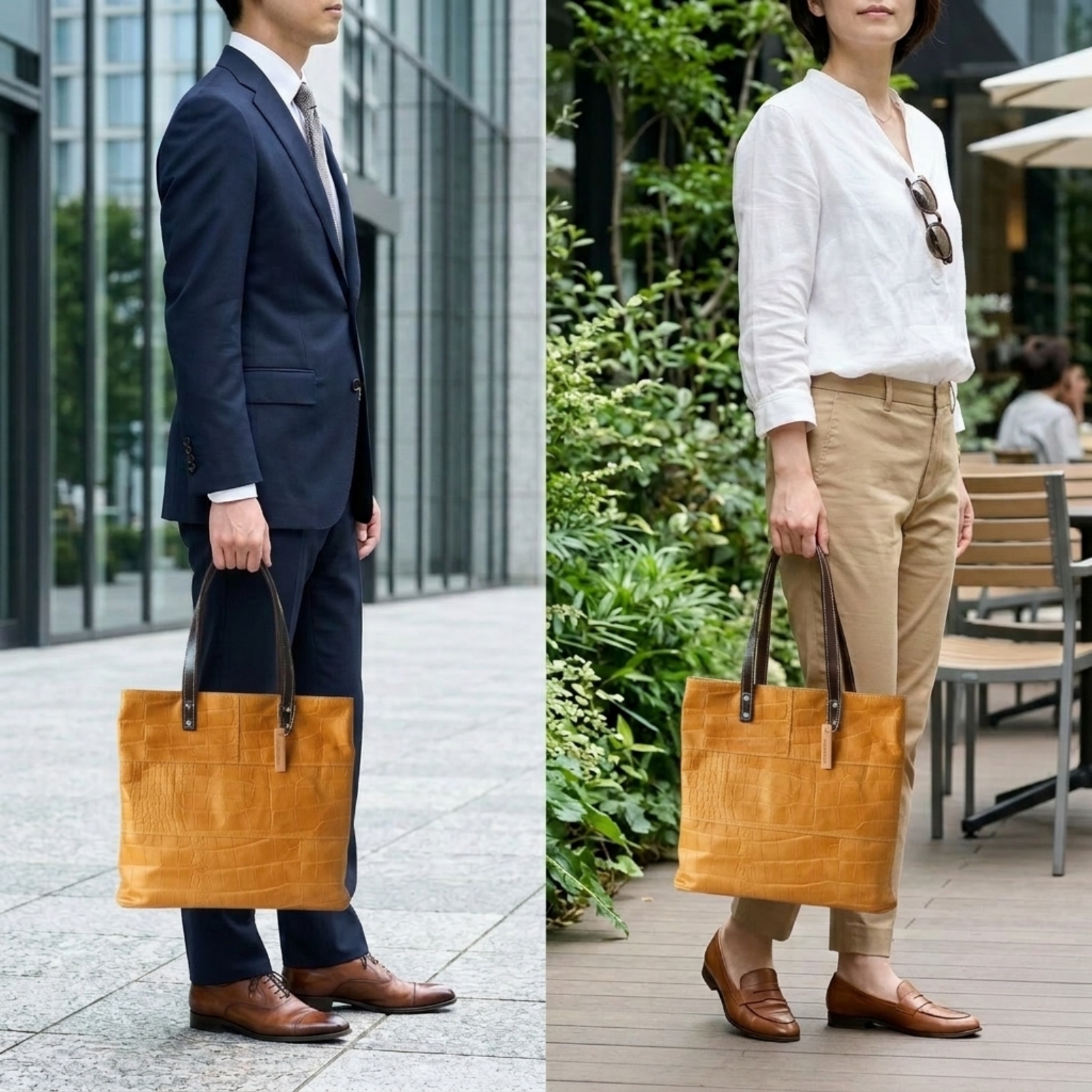 商品ごとに模様が異なる、唯一無二のクロコ型押し。この世界に二つとない「あなただけの模様」を持つことは、あなたの個性を尊重し、周囲とは違う特別な存在であることを感じさせてくれます。あなただけの特別な相棒として、愛着もひとしおです。