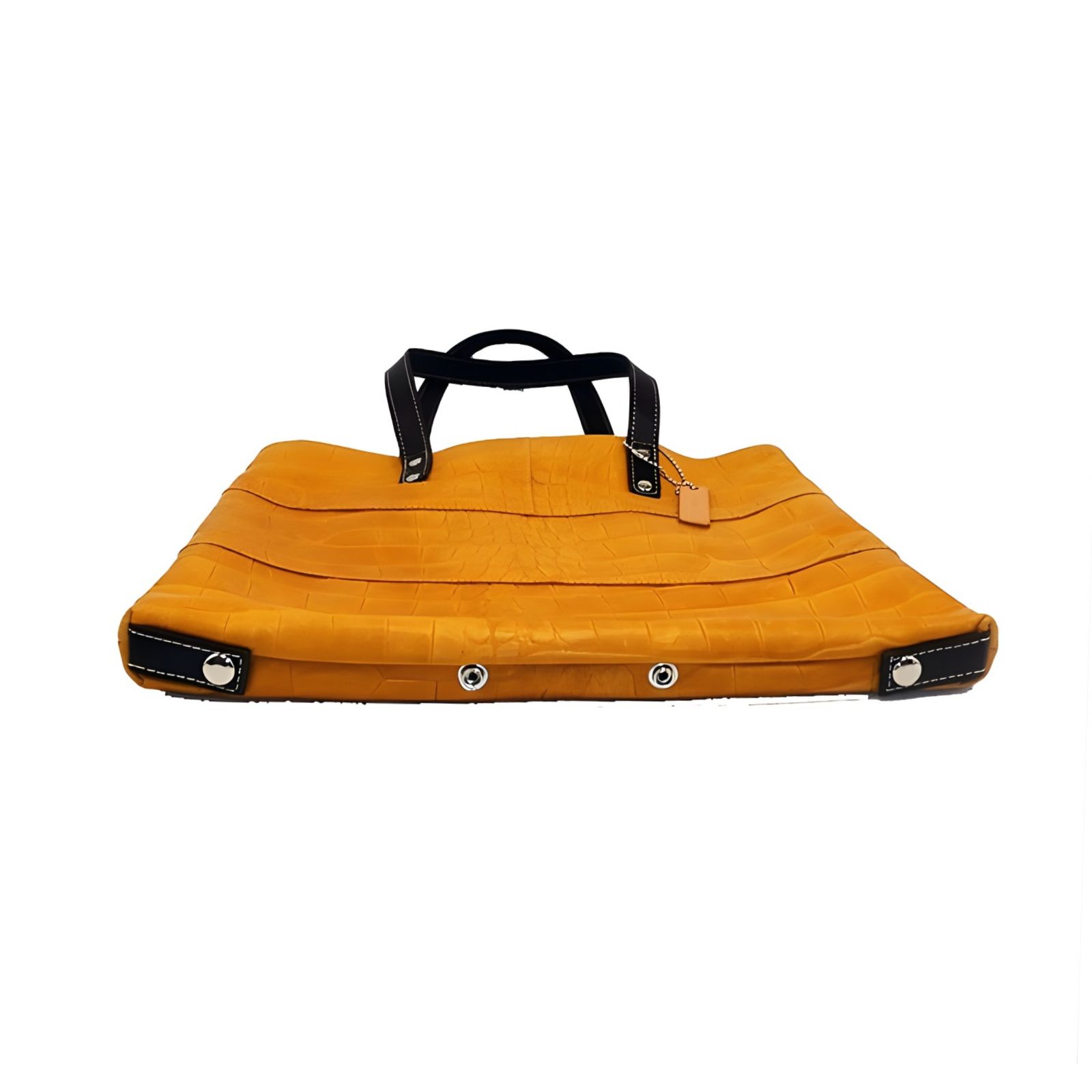 華やかなキャメルカラーの本体には、上品なクロコダイルの型押しを施しました。型押しの模様は裁断箇所によって一つひとつ異なるため、世界に二つとない「あなただけのオンリーワン」の表情を持っています。また、使い込むほどに革がさらに馴染み、上品なツヤが生まれる経年変化(エイジング)も本革ならではの醍醐味。男女問わず愛されるジェンダーフリーなデザインです。