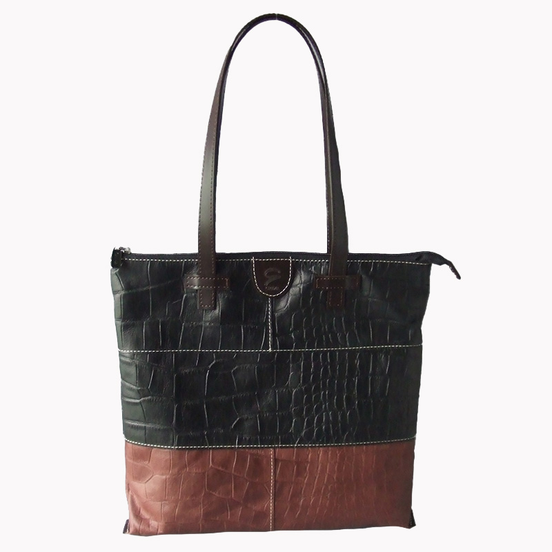体に馴染む牛革にクロコ型押しを施した洗練されたバイカラーバッグです。