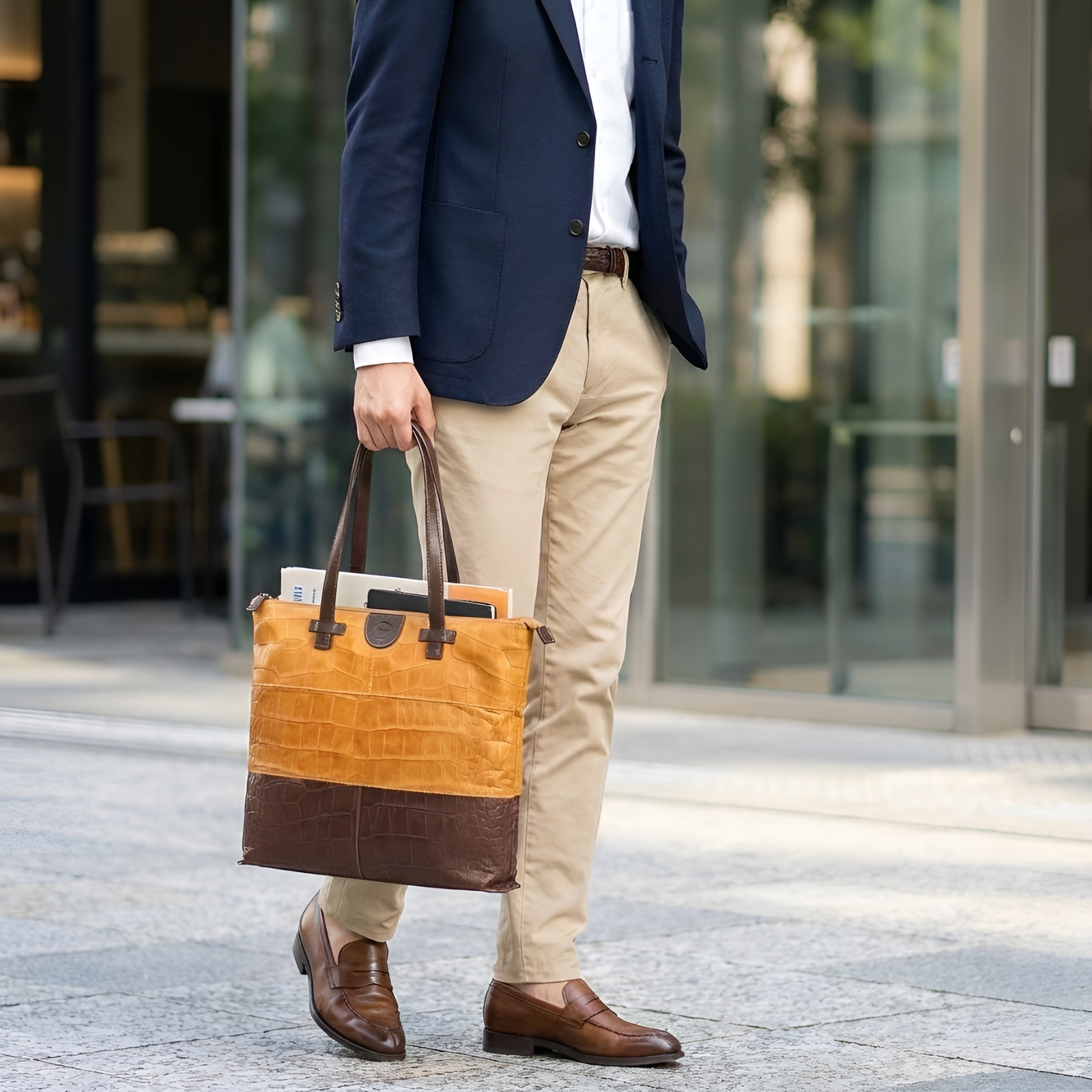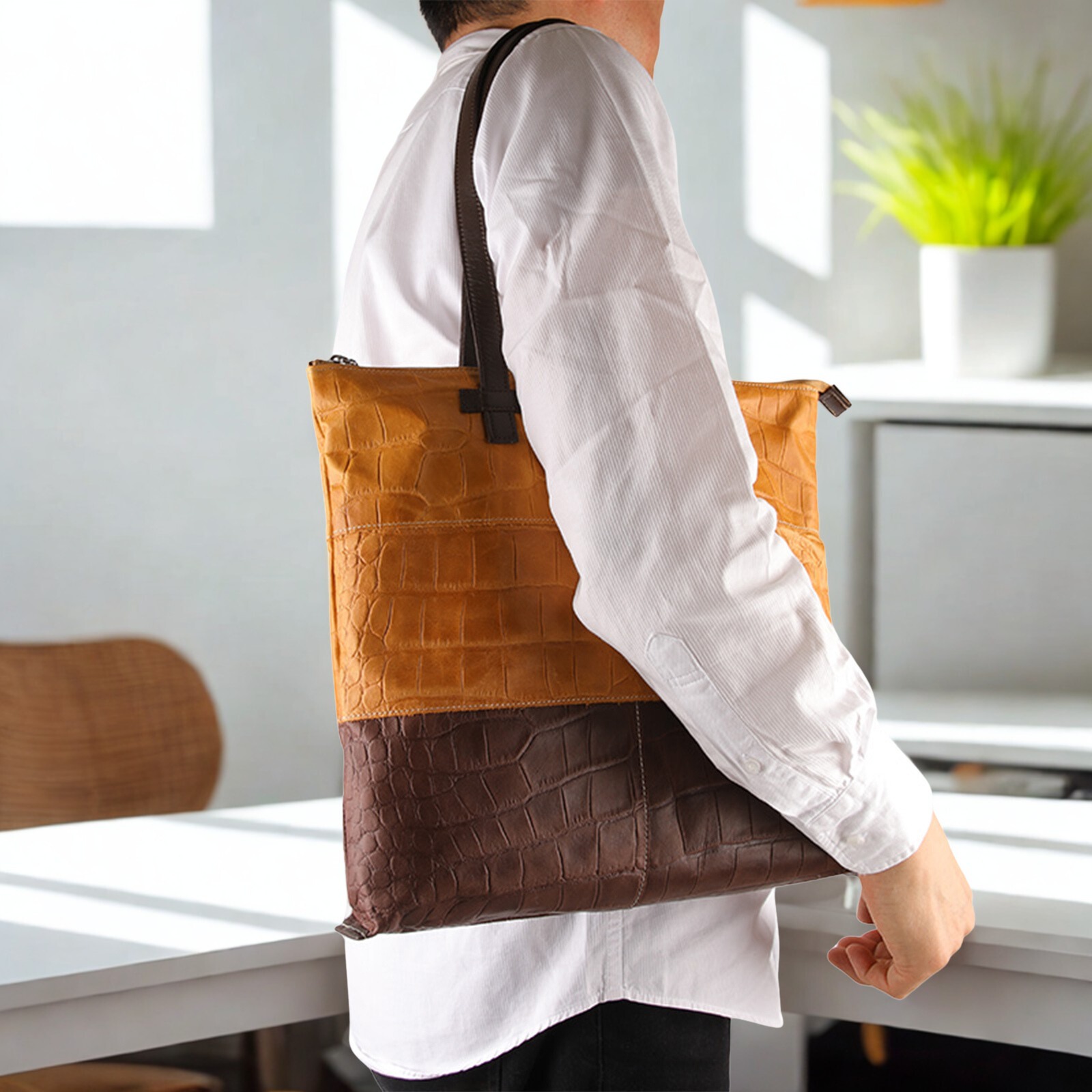 洗練された大人のための、ショルダートートバッグ。艶やかなクロコ型押しを施した柔らかな牛革が、持つだけで装いを格上げします。A4サイズも収まる機能性と、どんなシーンにも寄り添うタイムレスなデザインが、あなたの毎日をより一層豊かに彩ります。