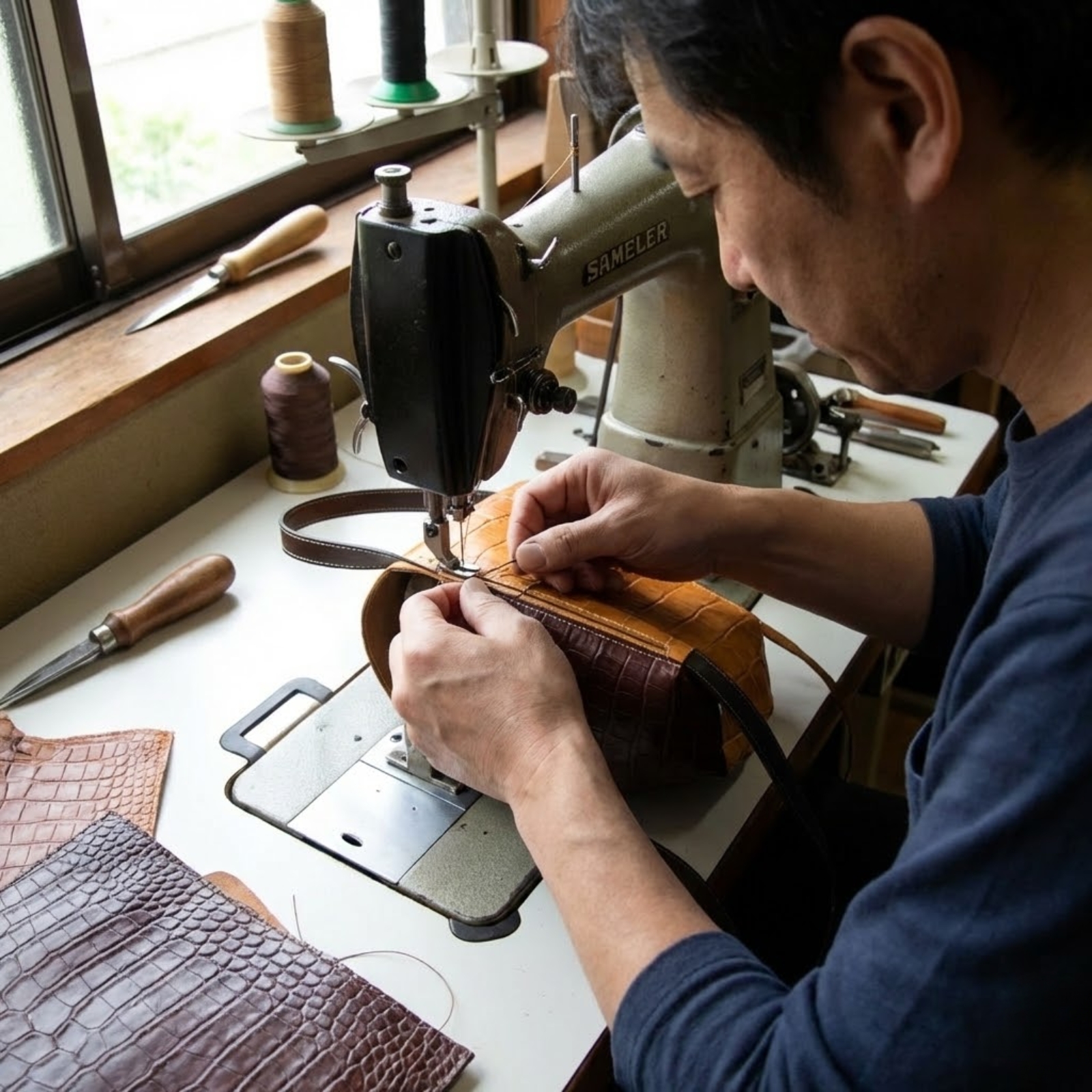 日本の工房で、熟練の職人が一つ一つ丁寧に作り上げた、品質へのこだわり。長く使い続けることで、その確かな技術と素材の良さを実感できます。