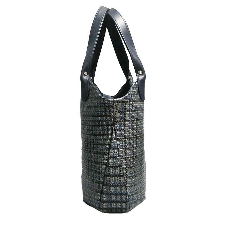 本来であれば小さすぎて廃棄されてしまう革も活かせるよう、小さなパーツを組み合わせてデザインしました。素材を余すことなく大切に使い、新たな価値を生み出す、環境にも配慮した thoughtful(思いやりのある)なバッグです。