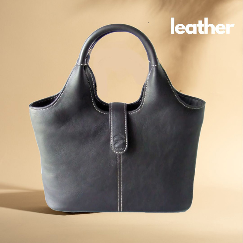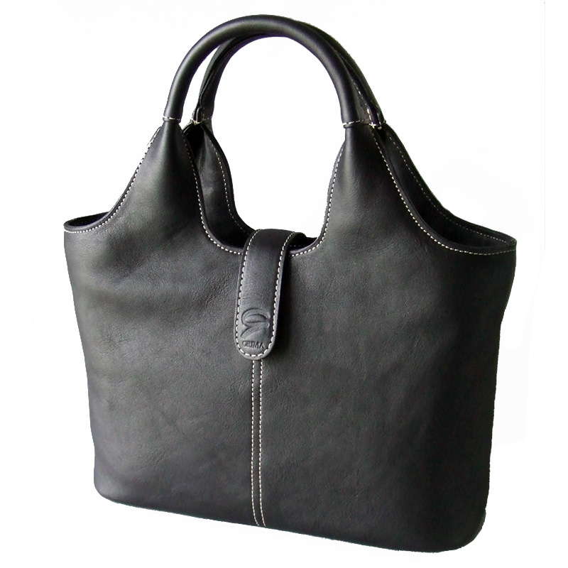 柔らかさと丈夫さを兼ね備えた牛革キップスキンに、ヌメシュリンク加工を施した手提げバッグ。