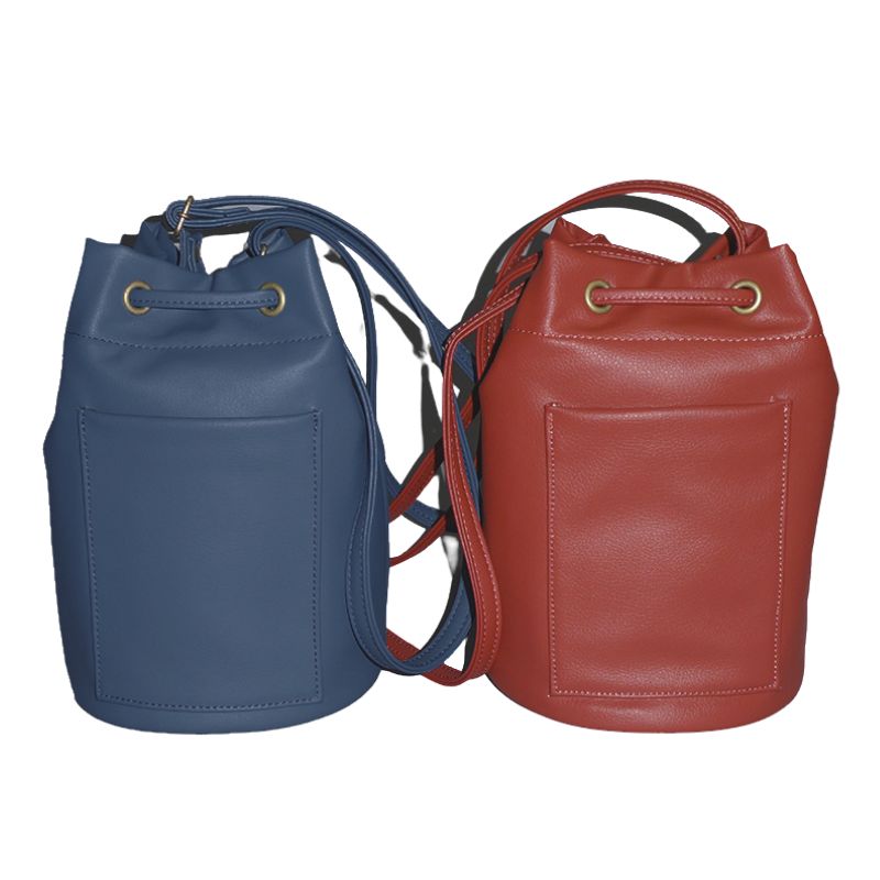 | ●機能 | 巾着式開閉。内オープンポケット×1、ファスナーポケット×1、外オープンポケットx1。ショルダーストラップ着脱不可(長さ調節可)。 |