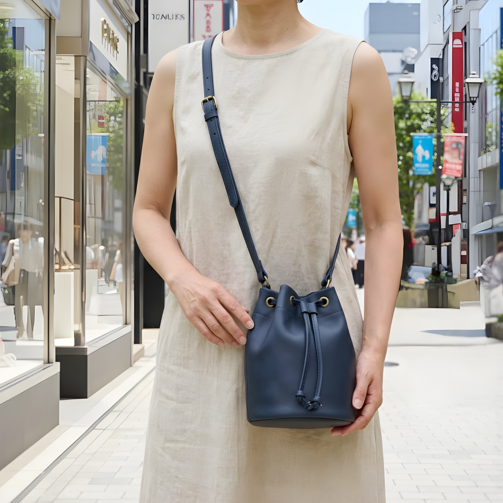 コロンと愛らしい、上質な丸底巾着ショルダー。