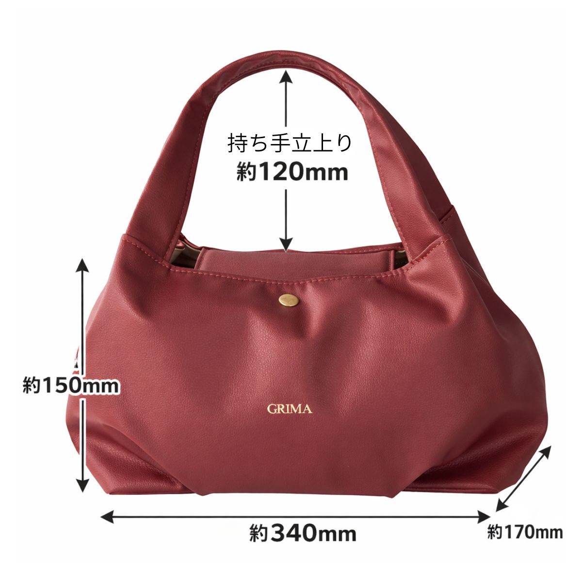 | ●機能 | カブセマグネット付開閉、内:オープンポケット×2、ファスナーポケット×1、持ち手立上り約12cm。 |