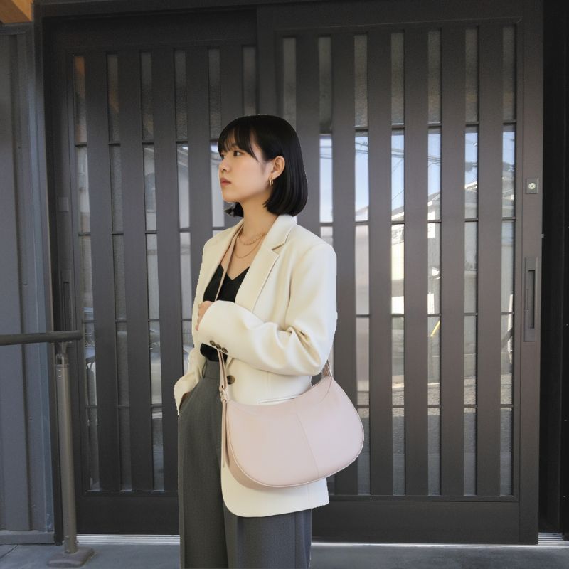 洗練されたエレガンスと機能性を纏う。大人の本革2WAYハーフムーンバッグ