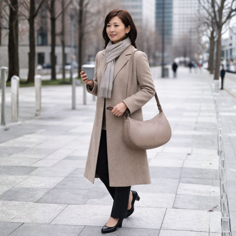 トレンチコートやジャケットに合わせた通勤スタイルから、デニムやニットと合わせた休日のリラックスコーデまで。日常使いはもちろん、少し特別なお出かけなど、様々なシーンで活躍する便利な一品です。