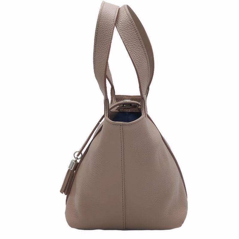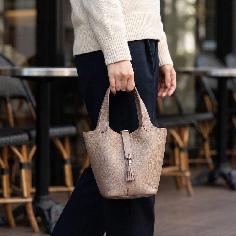 コロンとした愛らしいフォルムと、上品なベージュカラーが魅力の新作レザーバッグが登場しました。