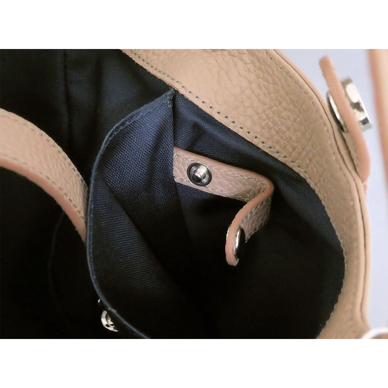 | ●機能 | マグネット開閉。内オープンポケット×1、ファスナーポケット×1、ホック式キーフックx1。持ち手立上り約16cm。 |