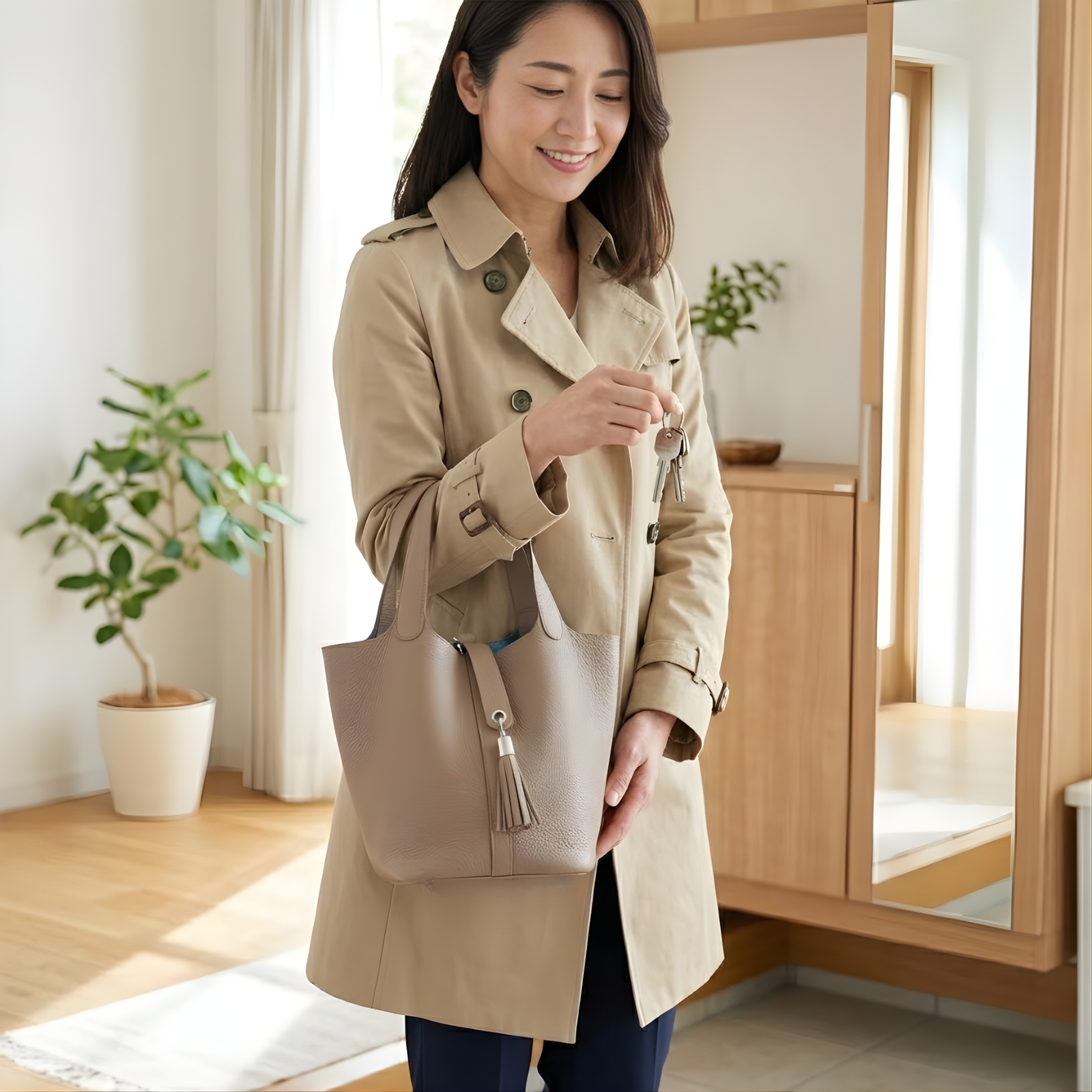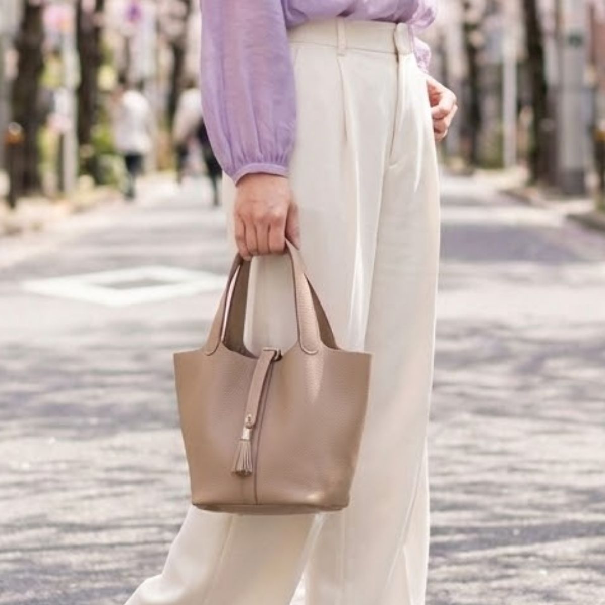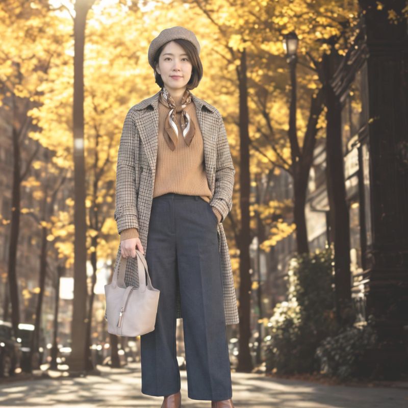 秋の装いにも合わせやすい上品なベージュは、オンオフ問わず活躍する一品です。
