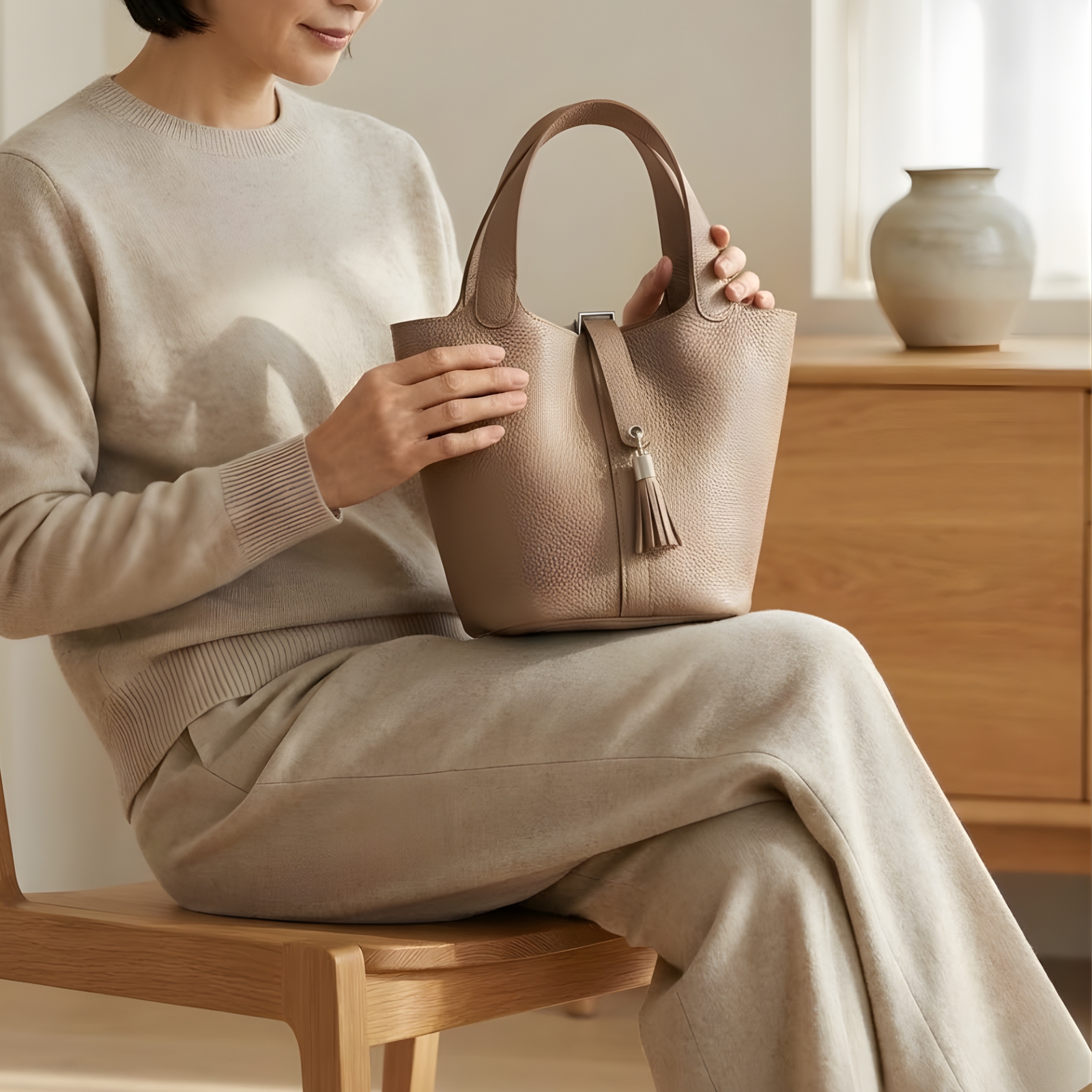 揺れるタッセルと控えめなロゴ。細部のこだわりに、大人のときめきを。