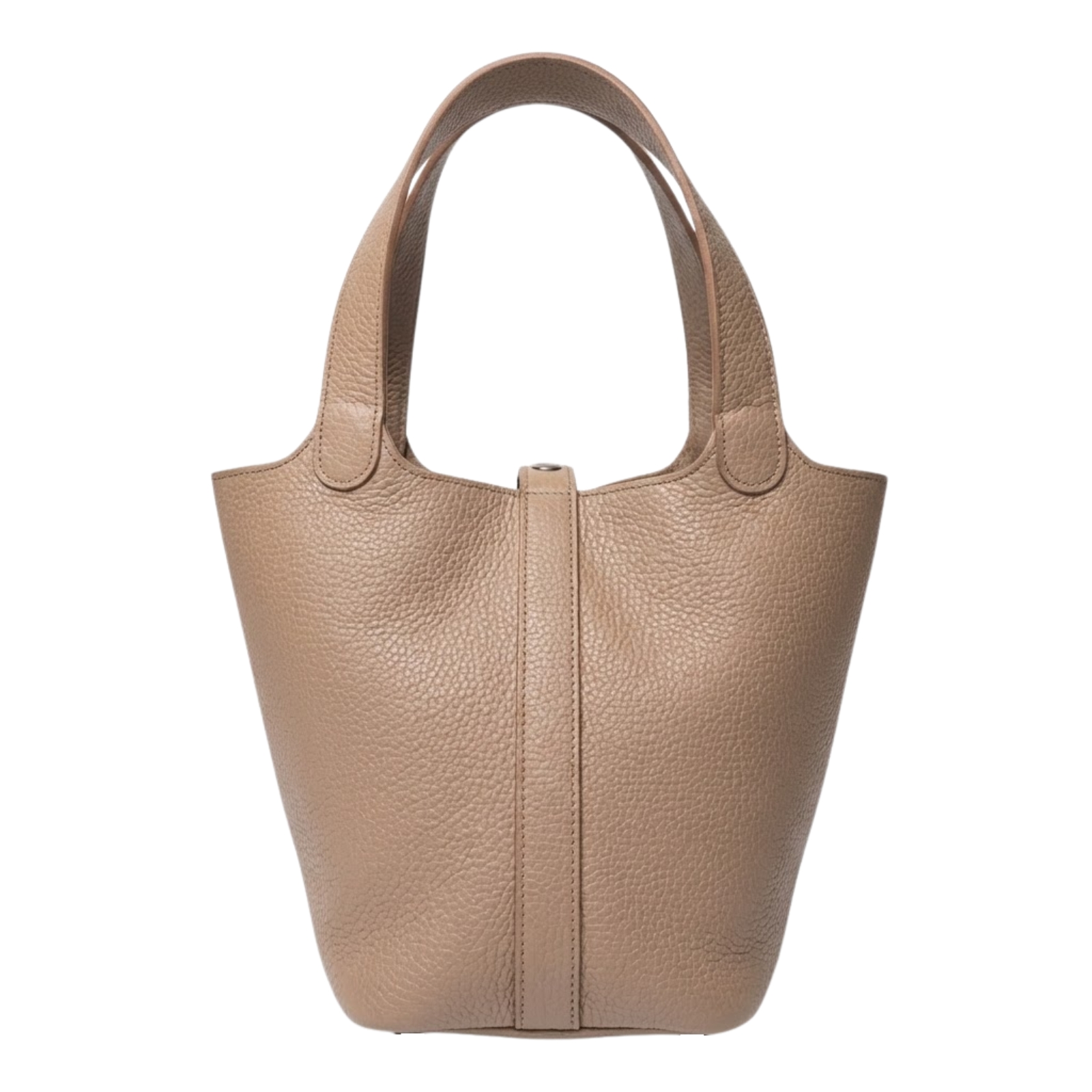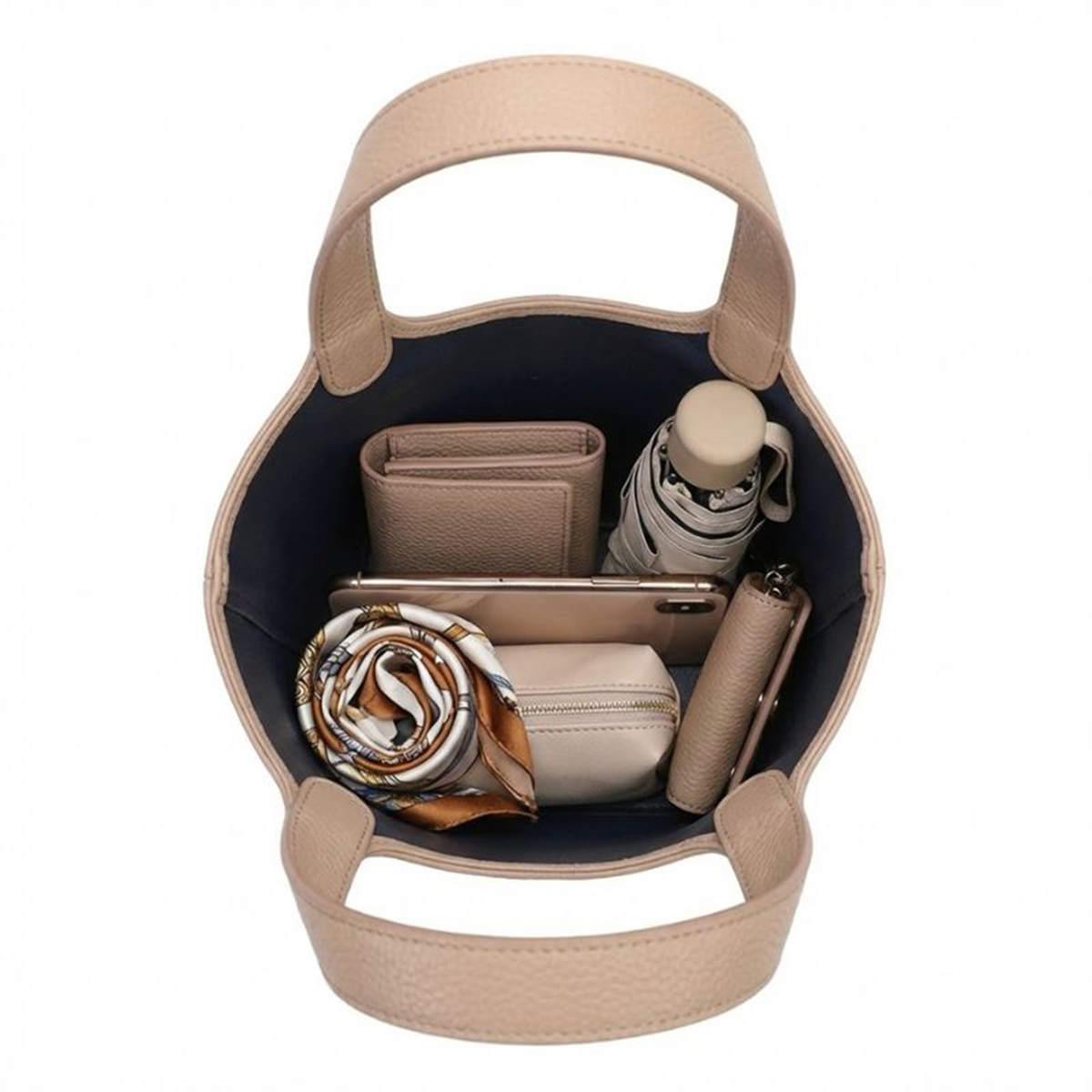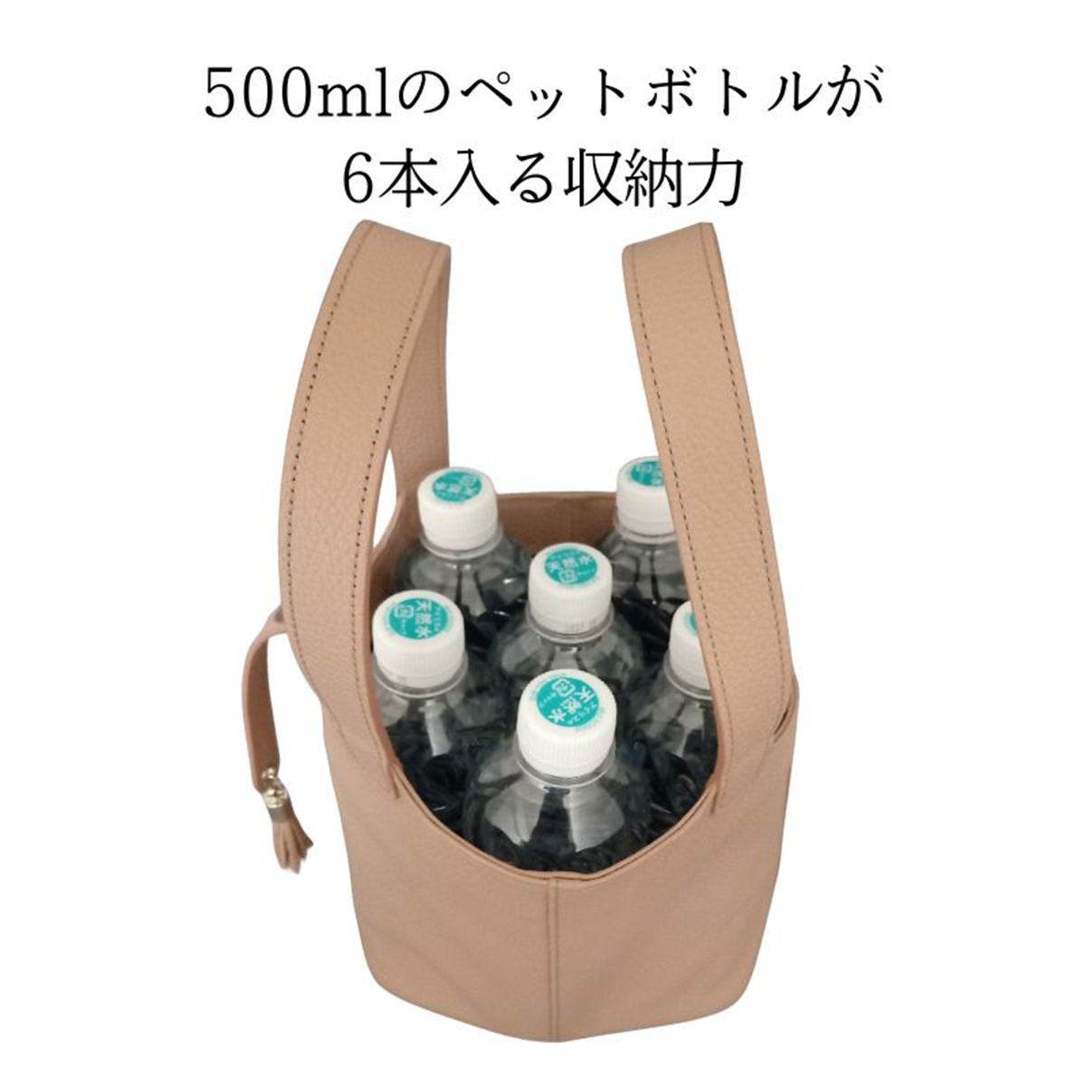 マチが約17.5cmと広く作られているため、見た目はコンパクトでも長財布やポーチ、タンブラーなどがしっかり収まります。