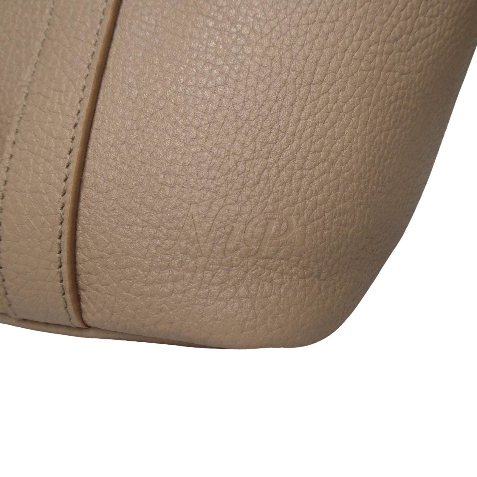 シボ型押し加工で高級感を演出した斜めかけも出来るショルダーバッグ。広いマチ幅で収納力抜群。ベージュのシンプルなカラーは性別やスタイルを問わず様々なシーンで使用出来ます。